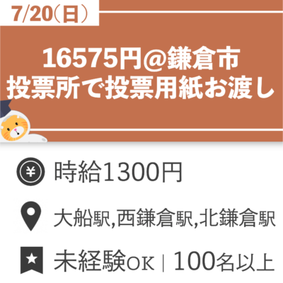 ⇒八王子駅に戻り給与受け取り後、解散(8:00頃解散予定)